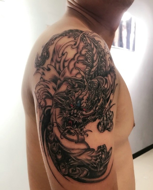 大臂老传统魅力的麒麟纹身图案