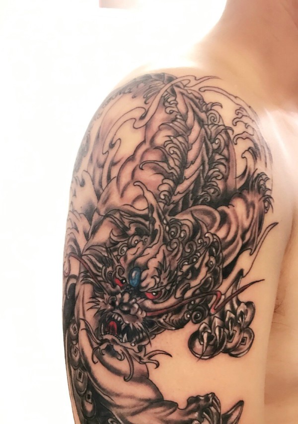 日式手彫刺青作品—半甲龙很感谢客户认可手彫刺青,手彫是日本纹身的手工雕刻技术,时间可以追溯到日本17世纪的江户时代。19世纪,手彫技术被日本黑帮挪用,被用作入会仪式,象征着从此就是江湖中人。在日式传统