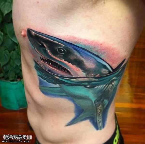腰部鲨鱼纹身图案
