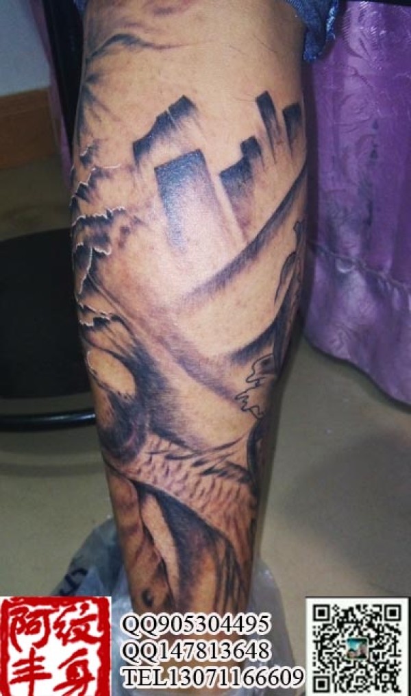 腿部纹身图案-腿部后面纹身-丰台纹身-阿丰纹身店QQ微信147813648