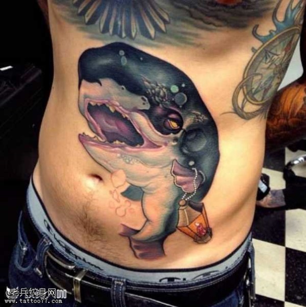 腰部鲸鱼纹身图案