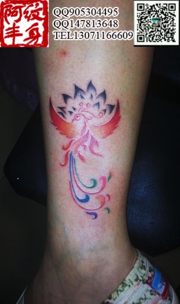 腿部凤凰纹身腿部纹身图案-小狐狸纹身-丰台纹身-阿丰纹身店QQ微信147813648