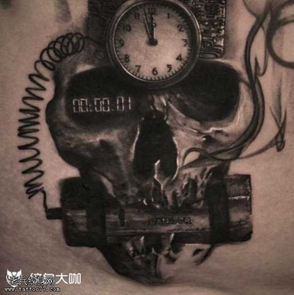 背部骷髅爆炸纹身图案