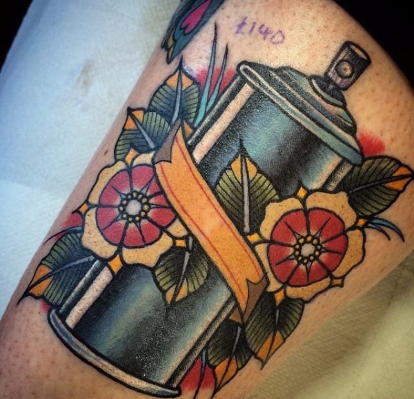 手臂上创意彩色喷绘瓶纹身图案来自安德鲁·史密斯