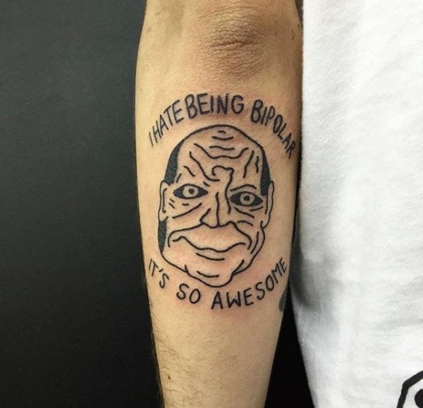 手臂上黑色简易诡异画风纹身图案来自杰克·沃茨