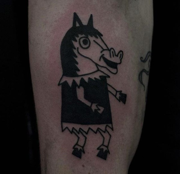 手臂上黑色简易诡异画风纹身图案来自杰克·沃茨