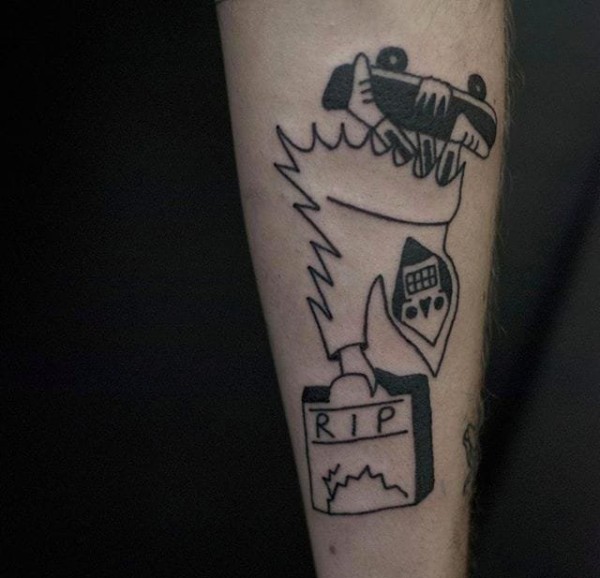 手臂上黑色简易诡异画风纹身图案来自杰克·沃茨