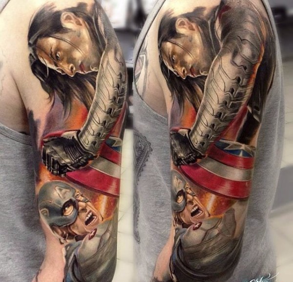 手臂上美国队长和冬天的士兵纹身图案来自安德烈·卢卡斯