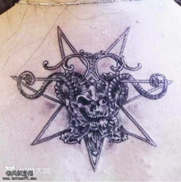 背部六芒星骷髅纹身图案