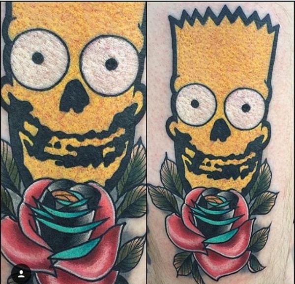 小腿和背部古怪的虚构人物肖像纹身图案来自冬青埃利斯