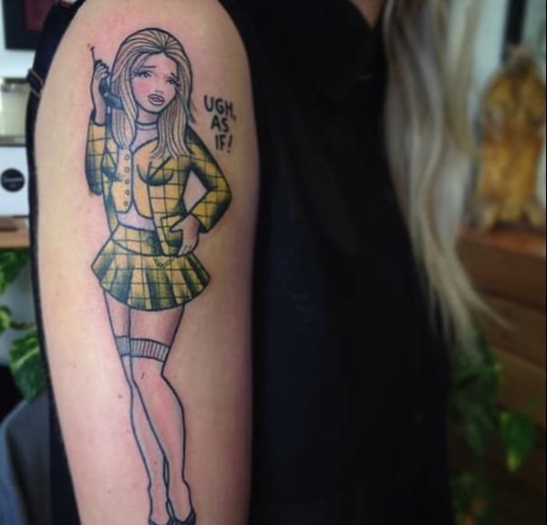 小腿和背部古怪的虚构人物肖像纹身图案来自冬青埃利斯