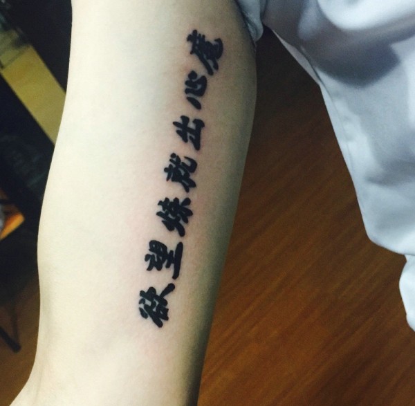 手臂内侧清晰明了的汉字单词纹身图案