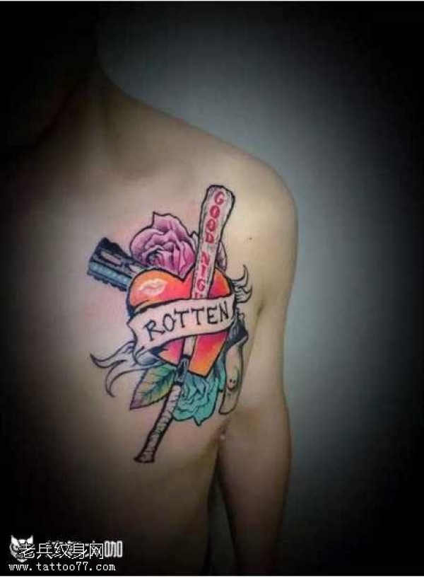 胸部邪恶的心纹身图案