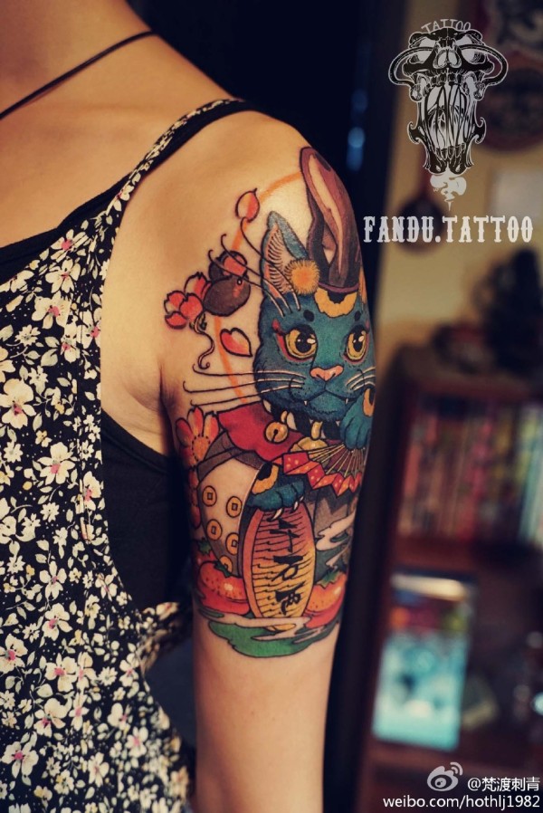 招财猫~~#梵渡刺青# 原创设计~妹子太能抗了~~一次完成!