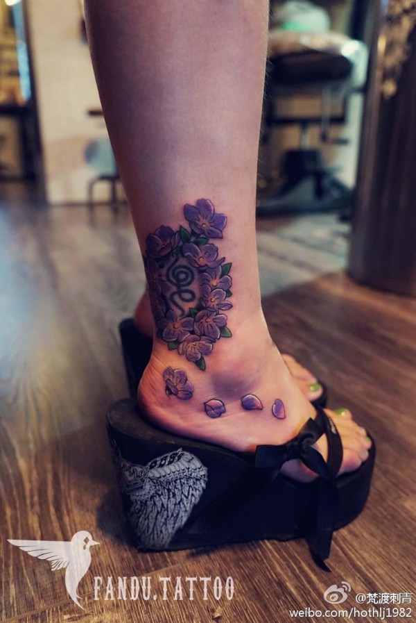 清新小桃花脚踝纹身_脚部纹身图案大全_纹身图吧