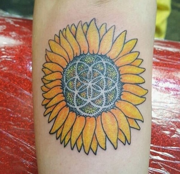 草图感向日葵纹身图案_植物纹身图案大全_纹身图吧
