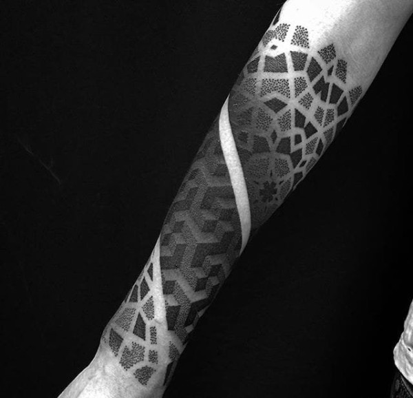 25款男性黑色手臂线条纹身点刺技巧半甲纹身图案