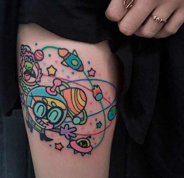 搞笑卡通纹身彩色线条鬼精灵电影里的纹身图案
