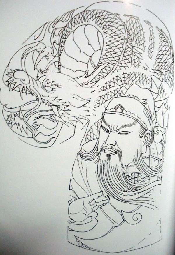 龙纹身手稿_一组老传统黑灰龙手稿纹身图案