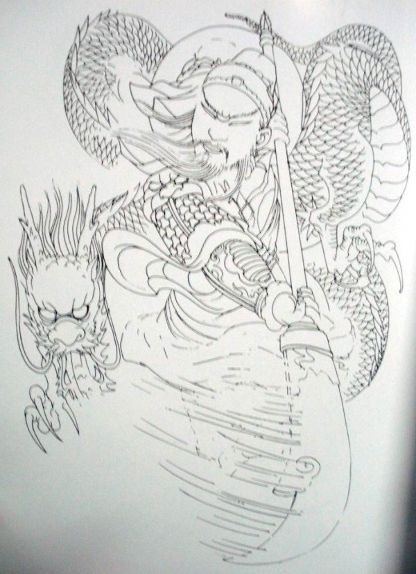 龙纹身手稿_一组老传统黑灰龙手稿纹身图案