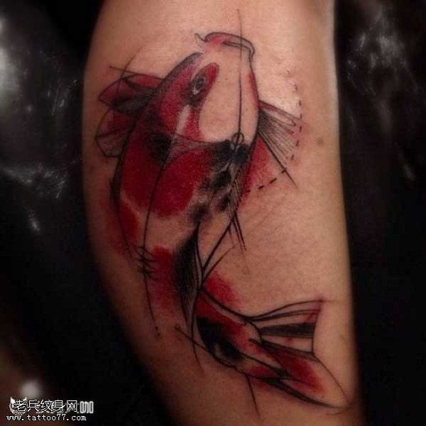 传统鲤鱼花小腿纹身_腿部纹身图案大全_纹身图吧