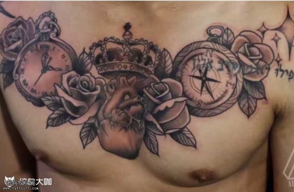 胸部心脏指南针纹身图案