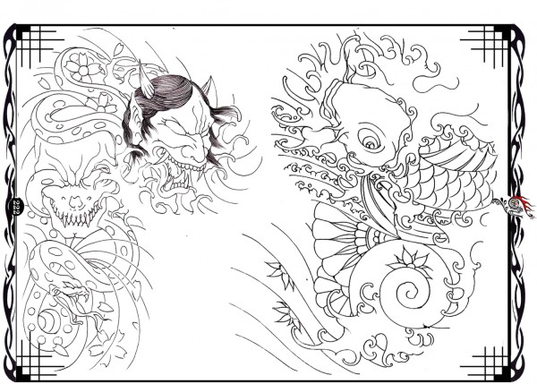 能面万媚纹身手稿_52张日式能剧面具纹身手稿图案素材欣赏