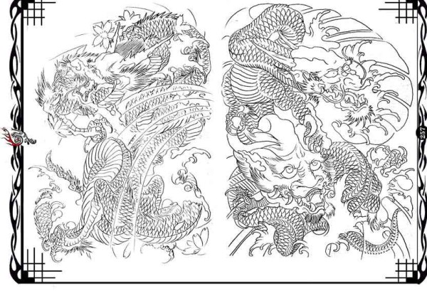 龙纹身手稿_一组老传统黑灰龙手稿纹身图案