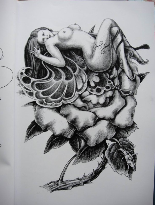 传统艺妓般若纹身图案手稿