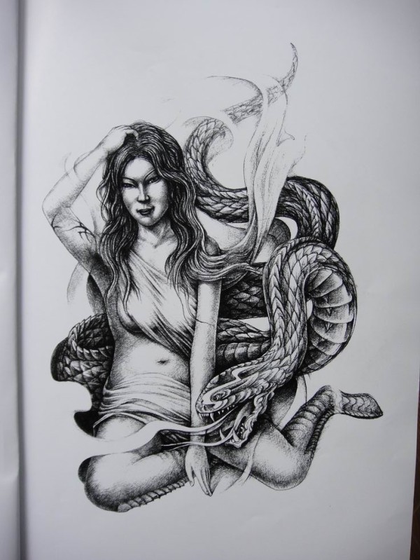 龙纹身手稿_一组老传统黑灰龙手稿纹身图案