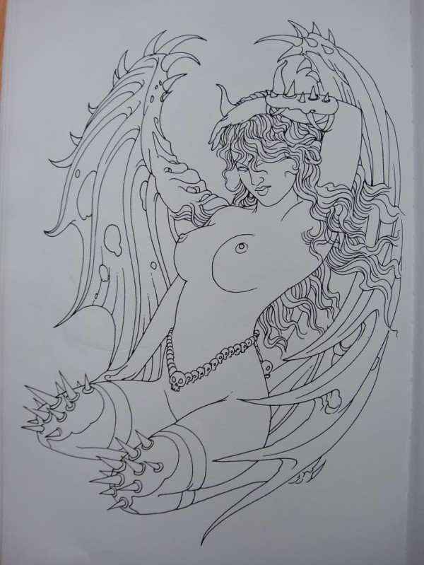 龙纹身手稿_一组老传统黑灰龙手稿纹身图案