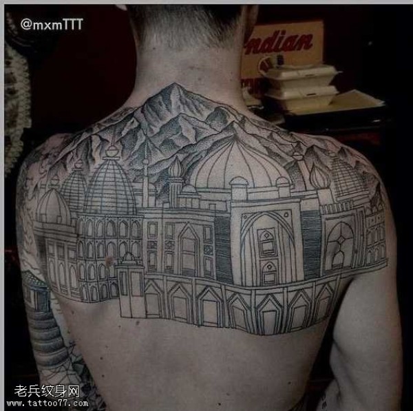 背部美丽房纹身图案