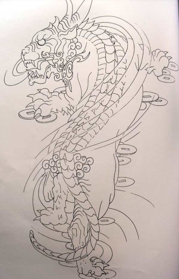 龙纹身手稿_一组老传统黑灰龙手稿纹身图案