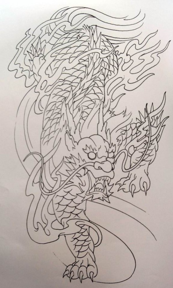 龙纹身手稿_一组老传统黑灰龙手稿纹身图案
