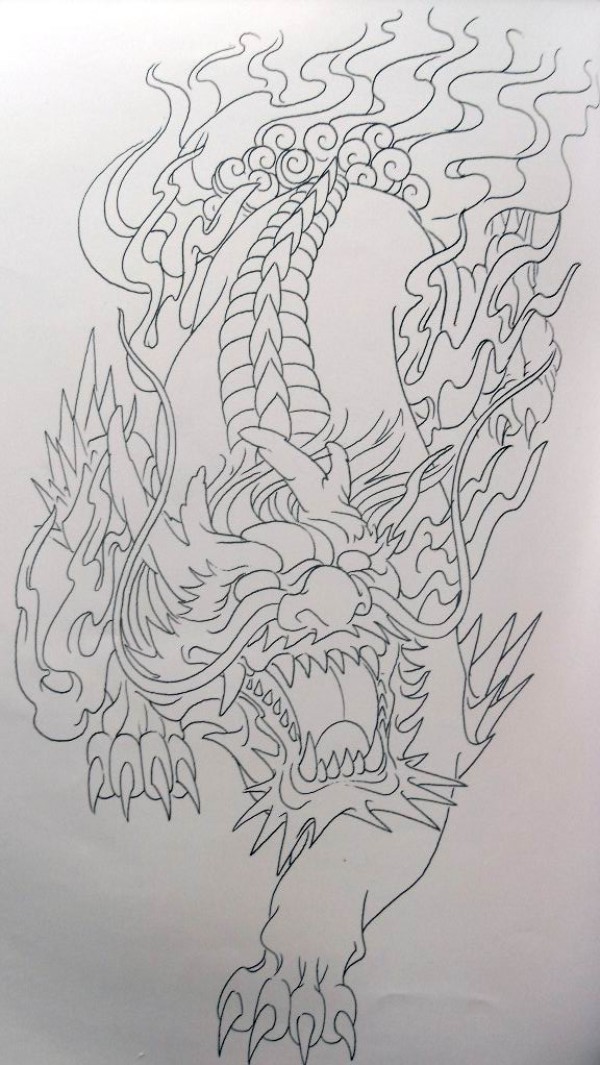 龙纹身手稿_一组老传统黑灰龙手稿纹身图案