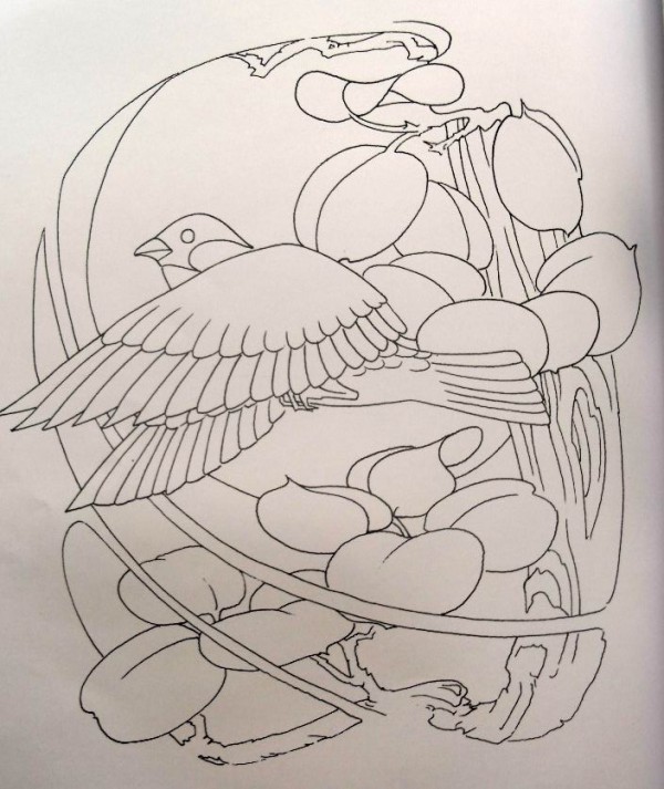 日式大板雾满背纹身手稿