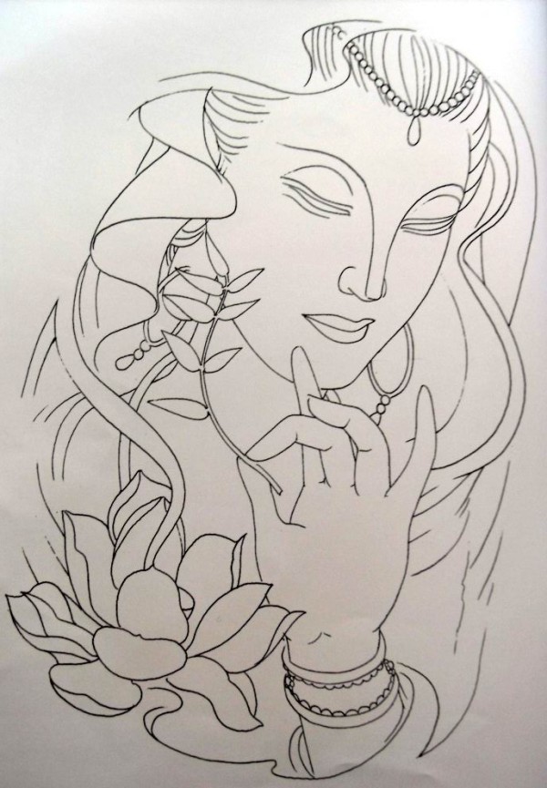 传统艺妓般若纹身图案手稿