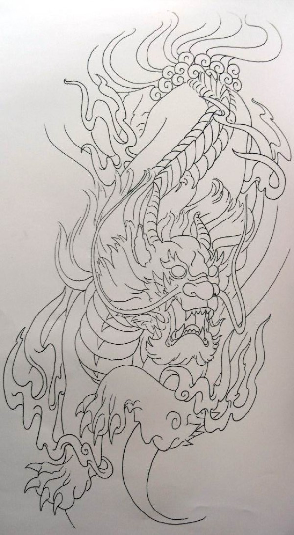 龙纹身手稿_一组老传统黑灰龙手稿纹身图案