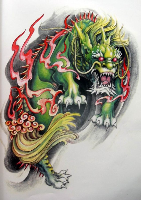 龙纹身手稿_一组老传统黑灰龙手稿纹身图案