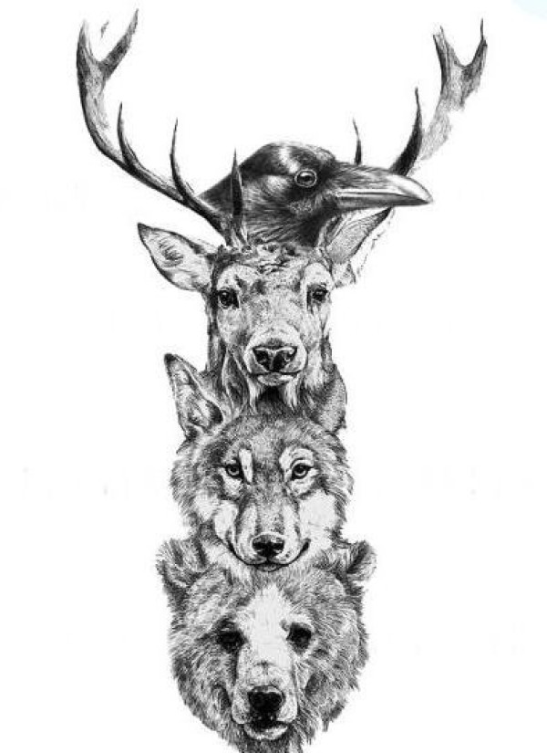 一组18张漂亮的欧美newschool动物纹身手稿图案