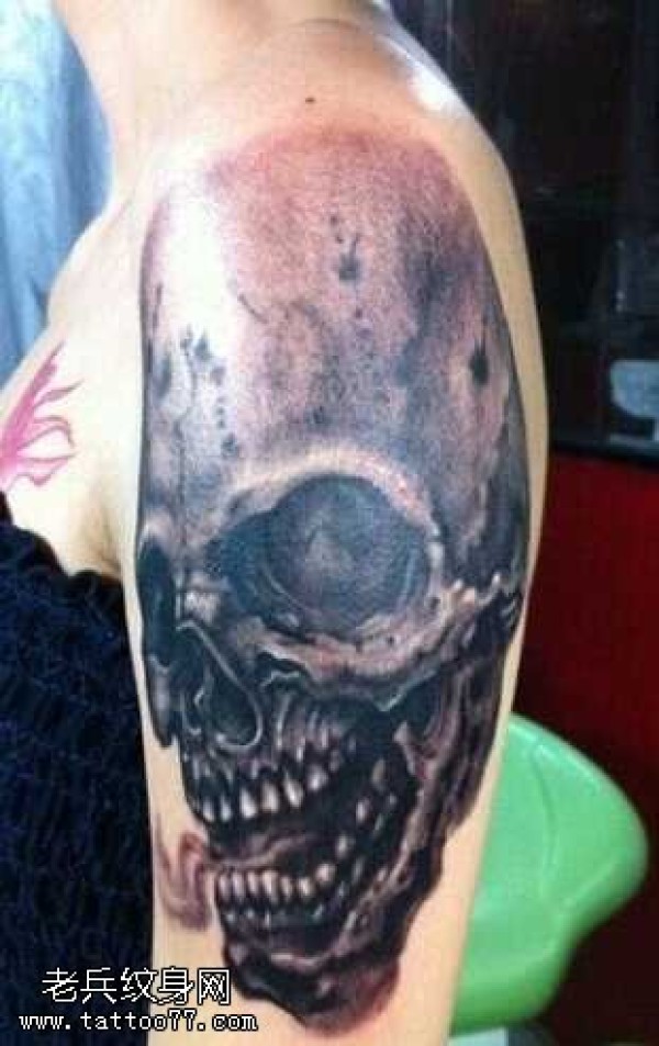 胳膊骷髅纹身图案