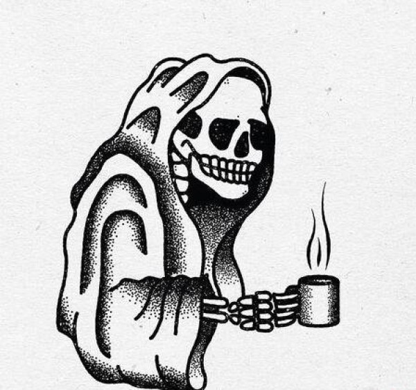 黑白个性骷髅头纹身手稿