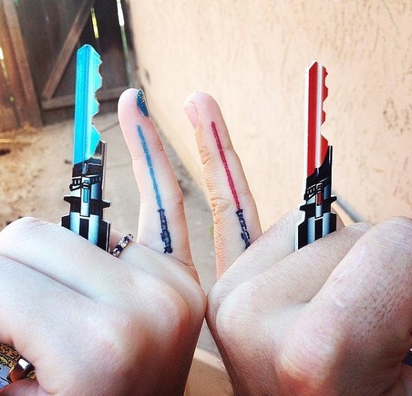 情侣手指关节上简单的匹配的纹身图案