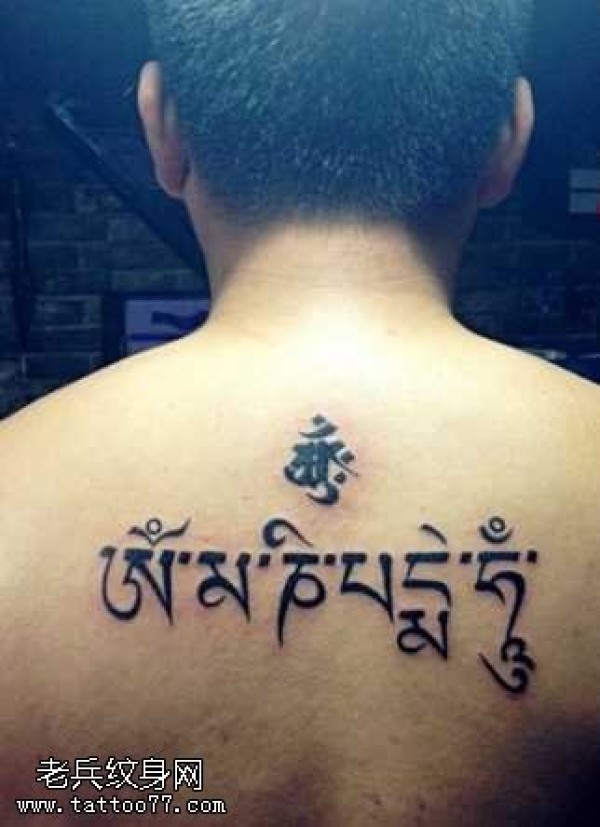 个性背部梵文纹身图案
