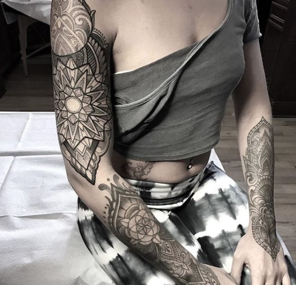 曼陀罗点刺梵花_100张曼陀罗点刺梵花纹身手稿图案