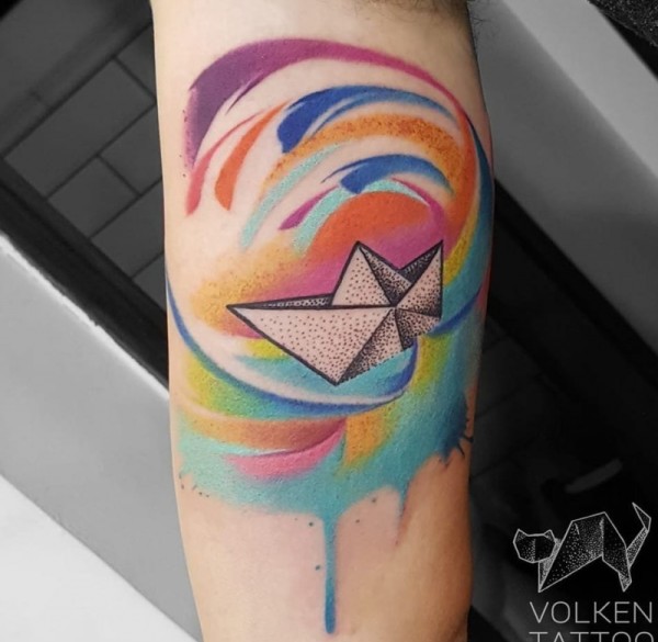 手臂上水彩泼墨唯美纹身图案来自沃肯