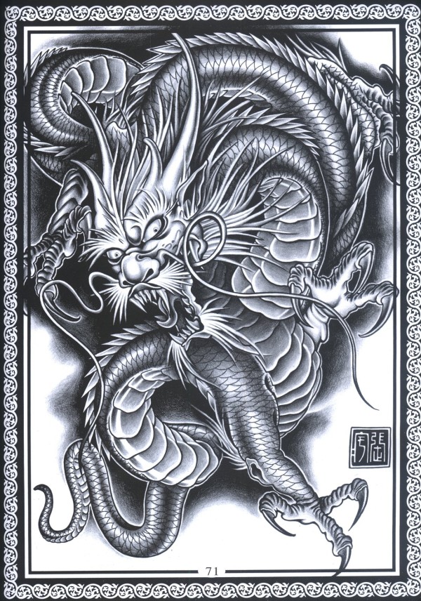 龙纹身手稿_一组老传统黑灰龙手稿纹身图案