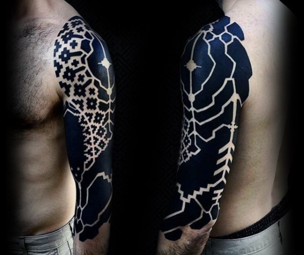 25款男性黑色手臂线条纹身点刺技巧半甲纹身图案