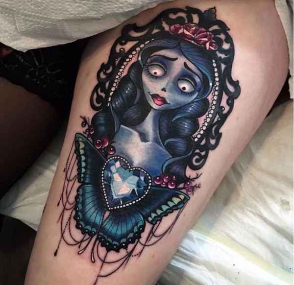 手臂上恐怖的僵尸新娘纹身图案来自叶尔万德·阿科波夫