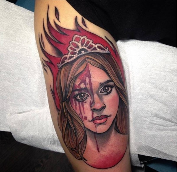 手臂上恐怖的僵尸新娘纹身图案来自叶尔万德·阿科波夫